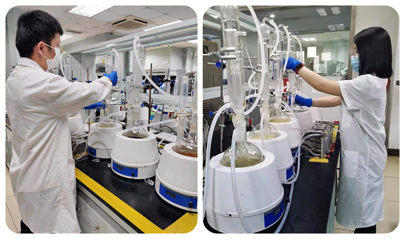 郑丽源与张竞争作为理化检验部的中坚力量,负责食品中的二氧化硫含量的检测。由于今年检测标准发生变化,每个样品仅蒸馏时间就耗时很长。面对如此艰巨的任务,他们毫不退缩,心怀使命,毅然决然地选择接受挑战,为此,他们放弃了午休时间、陪伴家人的时间,为食品安全筑起一道坚实的防线。