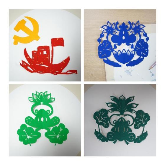 课堂伊始,老师展示了自己设计的精美剪纸作品,随后教授五角星、党徽、红船、清廉等图案的剪纸技巧。